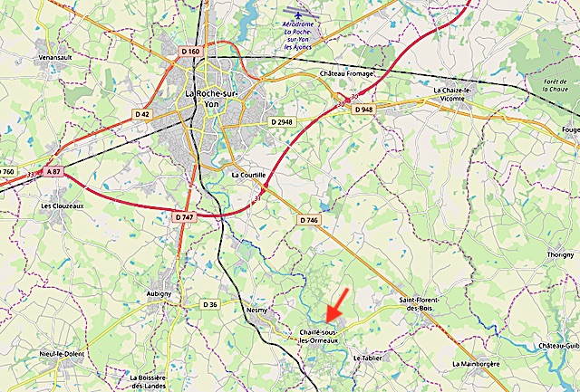 🔍 - ©© bysa - OpenStreetMap - Situation de Chaillé-sous-les-Ormeaux vers la Roche-sur-Yon (Vendée)