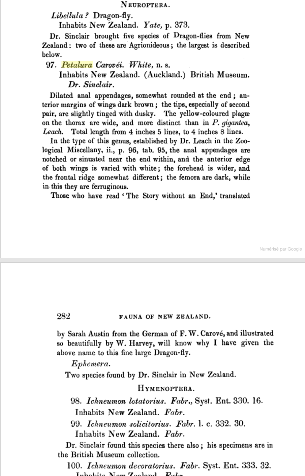 Dieffenbach E. 1843 - Travels in New Zealand, with contributions to the geography, geology, botany and natural history of the country. - Murray, London, vol. 2 : 281-282. - ONLINE