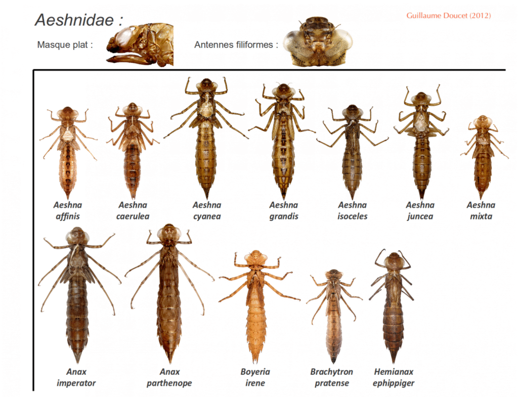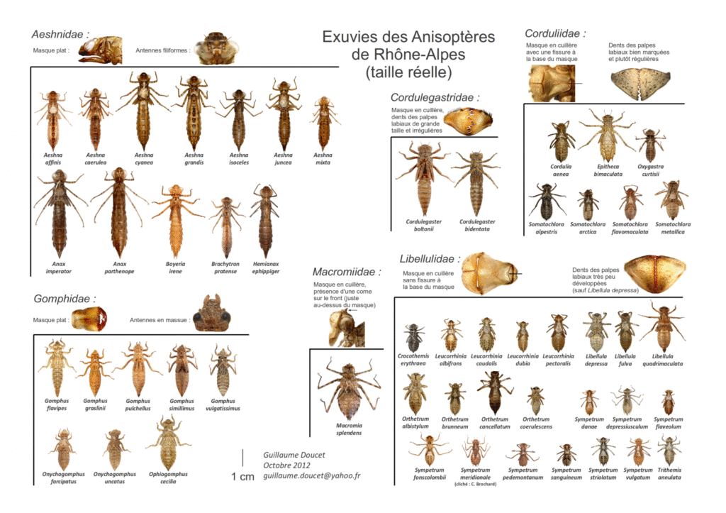Exuvies chez les Anisoptères de France Exuvies et Nymphes22 août 20239 septembre 2025 cyrille.deliry Doucet G. 2012 – Clé de détermination des exuvies des Odonates de France. – SfO, Bois d’Arcy. Exuvies des Anisoptères de Rhône-Alpes (France) par Guillaume Doucet (2012) On trouve sur cette planche la quasi totalité des espèces françaises… il ne manque que quelques Libellules de Corse.