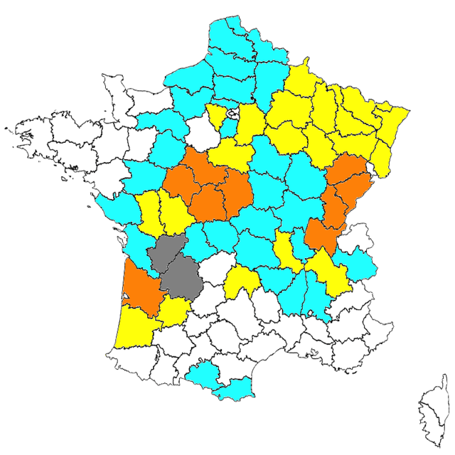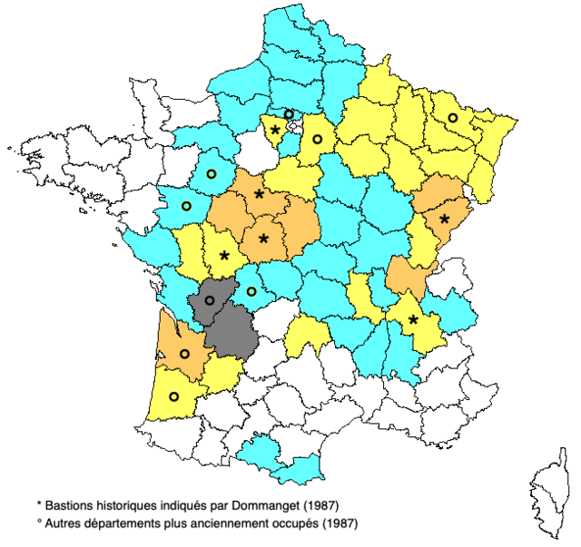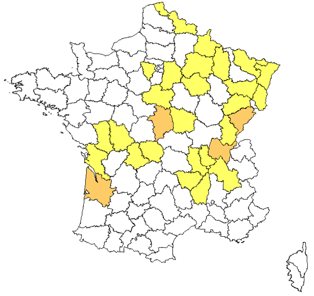 - Poitou-Charentes - Inscrite au PNAO. Deux-Sèvres([2019] ; suivi spécifique [2020] ; Guillotin 2022), Vienne [2019].