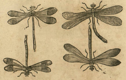 Muffet nomme nos insectes Libella, il distingue les Maxima Libella, Media Libella et Minima Libella correspondant respectivement à des Anisoptères, des Caloptéryx et d'autres Zygoptères (sens réduit).