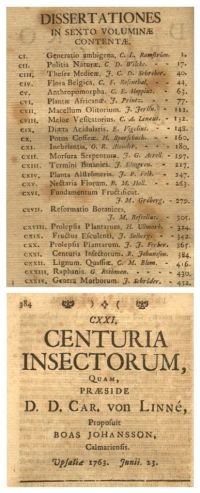 PJ (ci-contre) : Libellula variegata was not describe by Linnaeus, but by Johansson in 1763 (printed date, or, maybe 1764 publication possible, but all catalogs from that period remain at 1763). The story of this binom is interesting. Burmeister (1839) or Rambur (1842) deals with Systema Naturae ed. 1767 and give in fact Libellula variegata Linnaeus, 1767. But in this edition Linnaeus, which give the good source forget in the wake of the structure of his presentation, to write Johansson as descriptor. The real description is done in a serie of miscellaneous works directed (dir. publisher) by Carl von Linné in seven volumes, Amoenitates Academicae : in the sixth one, we have on the CXXXI dissertation a work of Boas Johansson which give to dragonflies species : Libellula variegata Johansson, 1763 (= Rhyothemis variegata (Johanssson, 1763)) and Libellula carolina Johansson, 1763 (= Tramea carolina (Johansson, 1763)) two corrections to do for the WOL because the first revisors are false too. Kirby (1890) give the quite good version : Libellula variegata Johansson, 1764 and Steinmann (1997) give the same one ! Davies & Tobin (1985) and Bridges (1994) give the correct date, but had not make the verification probably influenced by Burmeister (1839) and Rambur (1842) these one working in fact on Systema Naturae ed. 1767 were Linnaeus himself forget the good descriptor ! The solution is quite correct : Libellula variegata Linnaeus, 1763 ! The is for me no doubt about the descriptor : the latin presentation is : "as president D.D.Car. von Linné, proposed by Boas Johansson of Kalmar, Uppsala 1763, June 23". Kalmar is a city in southwestern Sweden, and Uppsala is the city where the journal is published. The conclusion is Libellula variegata Johansson, 1763 : Rhyothemis variegata (Johansson, 1763) and Libellula carolina Johansson, 1763 : Tramea carolina (Johansson, 1763)… it needs to read Garrison to see what he says on that option. I will do (nothing : Libellula carolina Linnaeus, 1763).