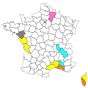 L’espèce se trouve dans le pays selon trois secteurs relativement réduits : le premier se trouve en Corse (essentiellement orientale), le second se trouve dans les Bouches-du-Rhône en Camargue (Tour du Valat) ainsi qu’en Crau humide (Vigueirat), le troisième le long du littoral Atlantique en Charente-Maritime et en Vendée. Elle a pu se maintenir un temps jusqu’en Loire-Atlantique au Marais de Guérande. Cette dernière a pu être renforcée lors d’explosions démographiques côté Camargue à la fin des années 2000[2] ou les populations avoir été renforcées par des conditions favorables alors. Des dispersions sont notés jusqu’en dans le Gard (Scamandre, Grau-du-Roi) ou l’Hérault (Mauguio). Lors d’explosions démographiques l’espèce a pu atteindre le Vaucluse, les piémonts de Chartreuse en Isère ou la région lyonnaise (Rhône), voire Genève en Suisse ou la Bavière en Allemagne. De telles incursions interviennent exceptionnellement et ont une dimension séculaire. Les effectifs côté Atlantique sont généralement supérieurs à ceux enregistrés côté Camargue [2023].
