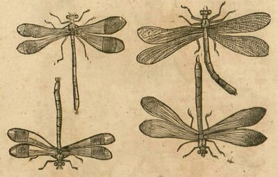 | 🔍 - Media Libella selon Muffet (1589-90) avec à droite deux ♂ de Calopteryx splendens et je pense trouver à gauche une paire de Calopteryx virgo. |